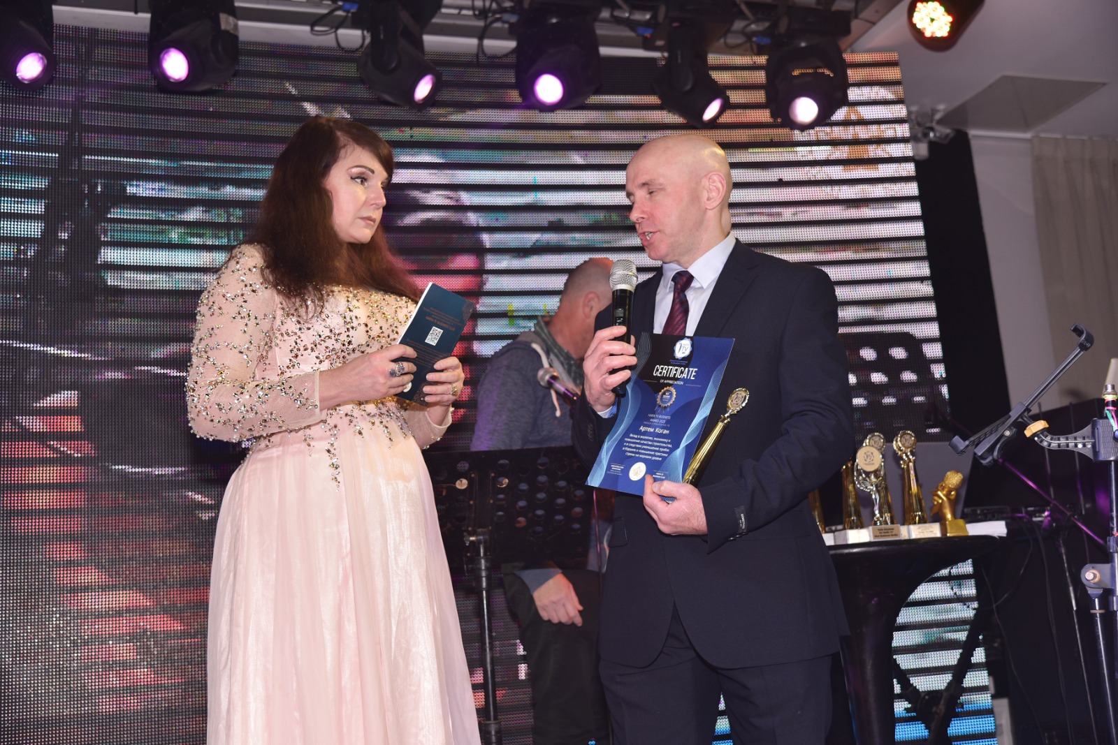 Празднование было масштабным: гостей ждали выступления музыкантов, скрипача, пианиста, гитаристов, тромбониста и джазовых певцов, а также незабываемое шоу от иллюзиониста Олега Гезина и гала ужин.