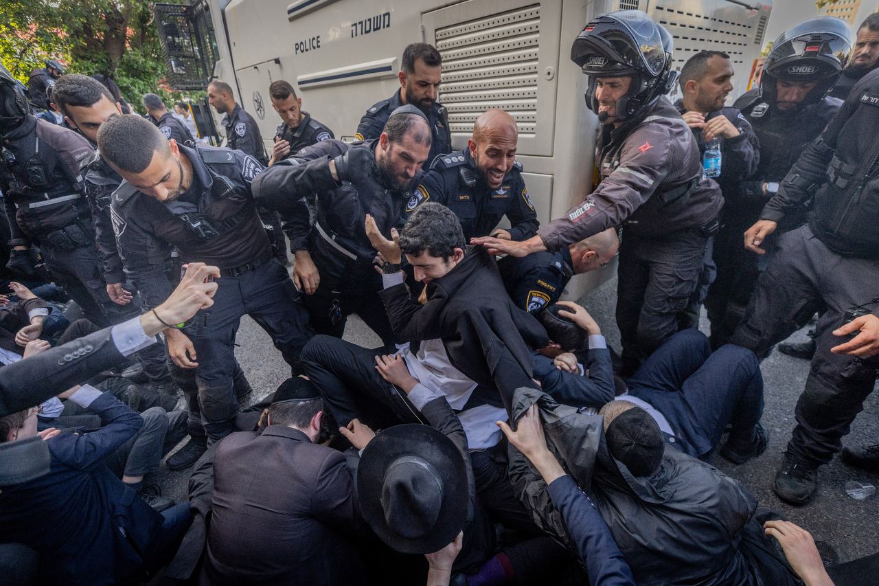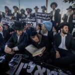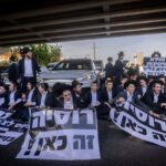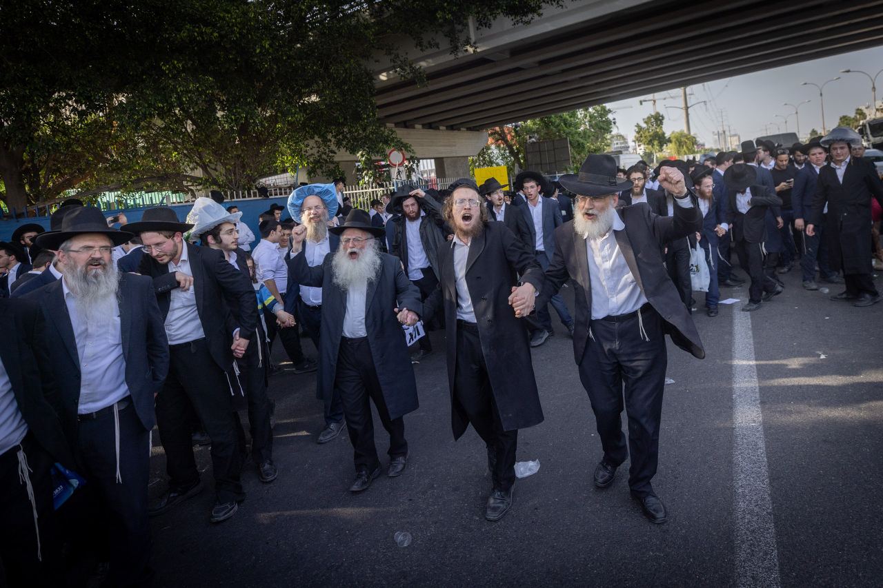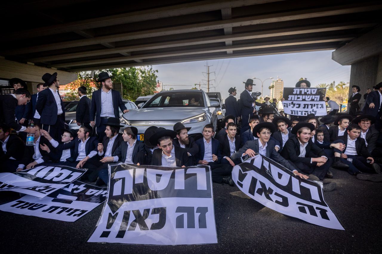 Они выступают против нового Закона о призыве, который определяет квоту учащихся иешив, подлежащих призыву в армию.