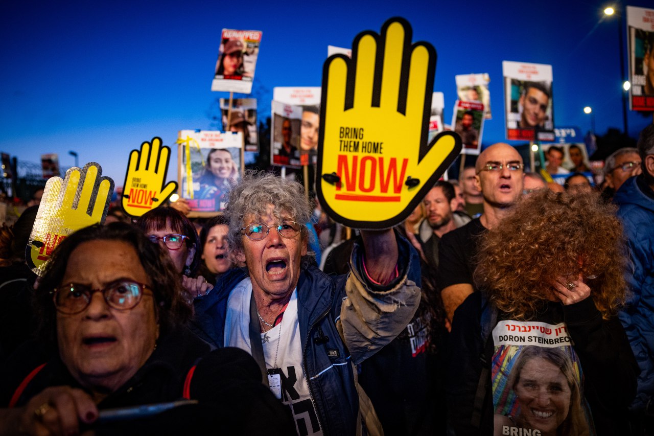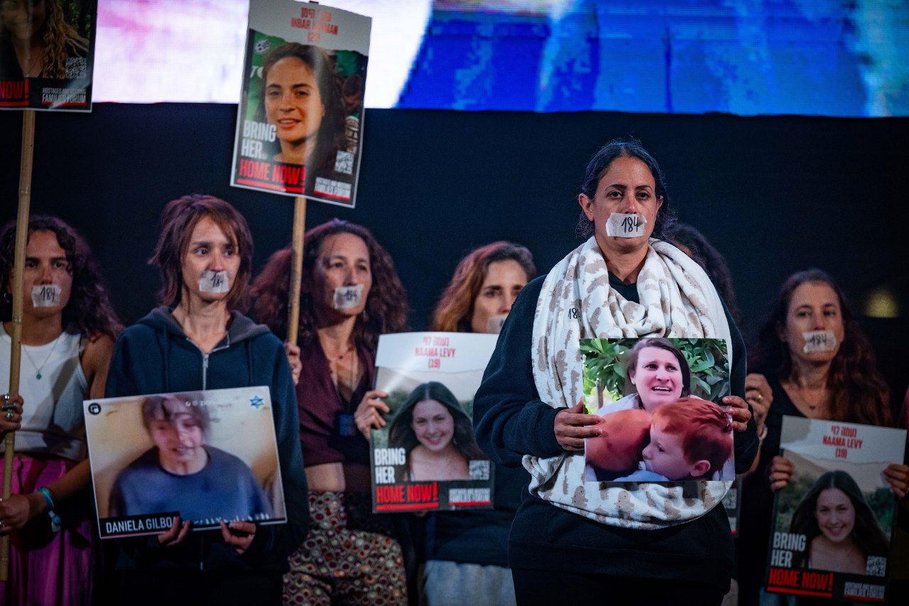Кроме того, участники манифестации приняли участие в митинге, посвященном шести месяцам со дня трагедии 7 октября.